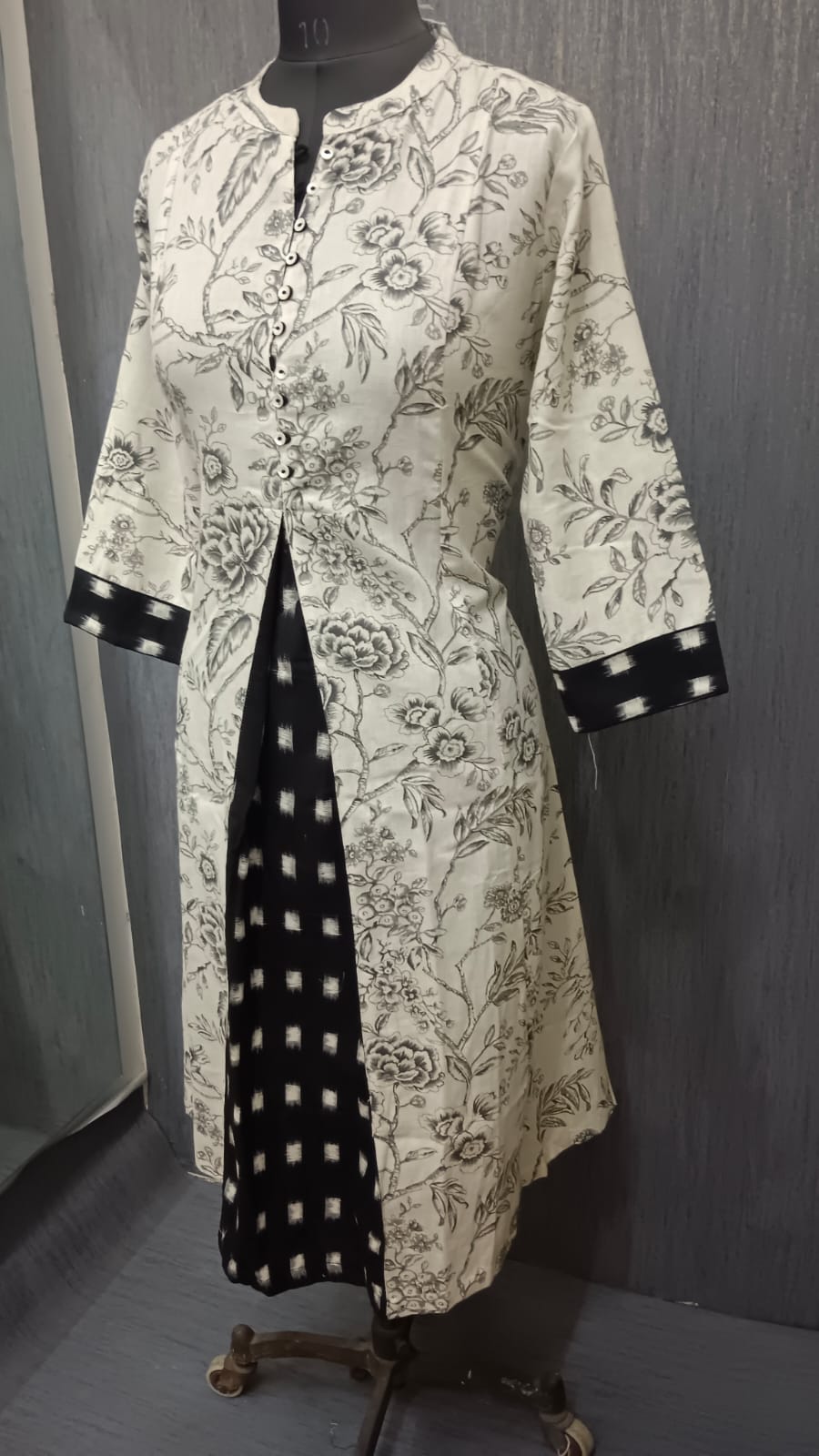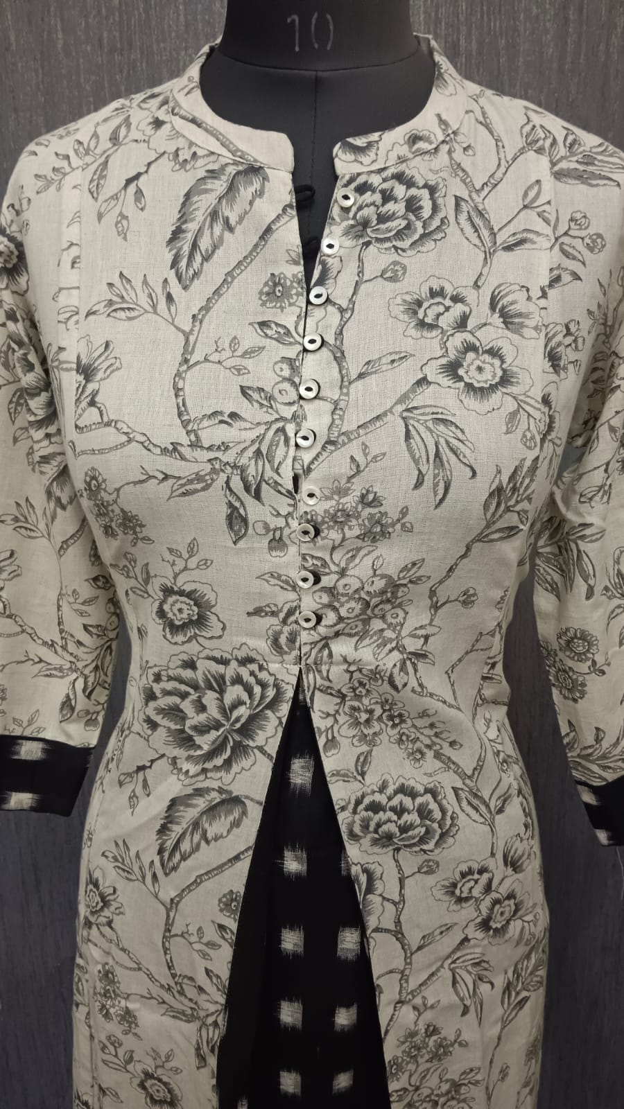 Neckline: Mandarin neckline with button detailing